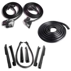 This 10 piece weatherstrip set consists of some of the most accurate reproductions on the market. Made with fine grain rubber and correct molded ends.