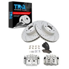 Replaces 2000 Subaru Outback To 6/30/00 Production Date Front Ceramic Brake Pad & Rotor Kit with Calipers TRQ BKA19157