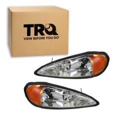 Replaces 2001 Pontiac Grand Am Driver & Passenger Side 2 Piece Headlight Set TRQ HLA79677