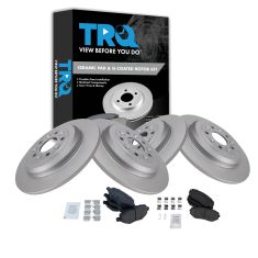 TRQ brake kits are designed to restore your brake system to like-new performance. TRQ brake pads are positive molded, thermal scorched, chamfered, and utilize a multi-layer shim for enhanced performance and service life. TRQ G-coated rotors have long-lasting rust prevention, perfect for wheels with large openings that expose the rotor and rotor hat during daily drives. All products are fit and road-tested in our Massachusetts R&D facility to ensure we deliver on our promise of Trusted Reliable Quality.