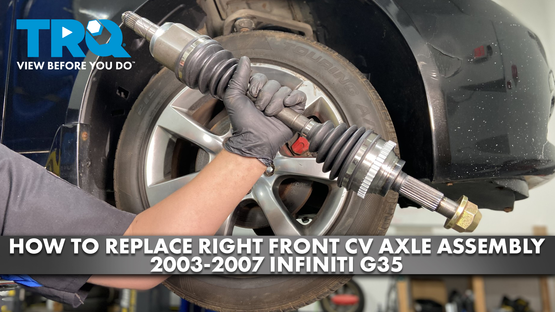 This video shows you how to install a new TRQ CV axle assembly in your 2003-2007 Infiniti G35.