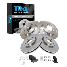 TRQ brake kits are designed to restore your brake system to like-new performance. TRQ brake pads are positive molded, thermal scorched, chamfered, and utilize a multi-layer shim for enhanced performance and service life. TRQ rotors have a non-directional finish that reduces the break-in period for new rotors as well as reducing vibrations throughout the rotor’s lifecycle. All products are fit and road-tested in our Massachusetts R&D facility to ensure we deliver on our promise of Trusted Reliable Quality.
