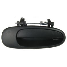 We'll speed it up slightly here as we remove those two bolts. Once you get that rear bolt out you can actually reach up and grab your lock and twist it counter clockwise and pull it out. Now your handle comes right out. Just to show you, your lock is in there like that. You just need to reach up there and twist it counter clockwise and pull it out. Here's a new handle from 1A Auto. This is a smooth handle. We do offer these both smooth and textured. This vehicle, as you can see, has black door handles. It should have the textured finished handles. I wanted to show you this smooth one. You can paint this to match your vehicle if you desire. What I suggest for that, go to a automotive parts store that has a good paint department. They can mix up some paint to match your vehicle, put it into an air charge can and then you can paint the handle yourself. You probably will want to this gasket before you paint. For this vehicle the original texture handle's still working well so we'll reinstall that.